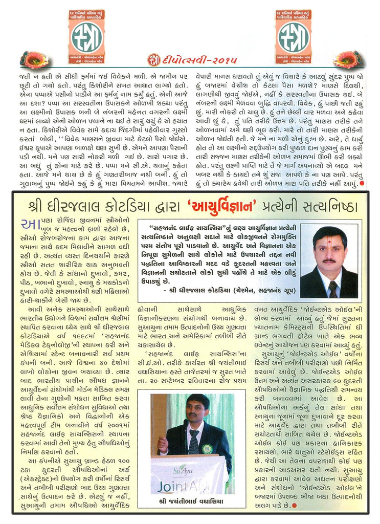 Dec 12,2015The Visionary leader of Sahajanad group of industries Shri Dhirajlal Kotadia strongly believes that the "Ayurveda" hold solutions...
