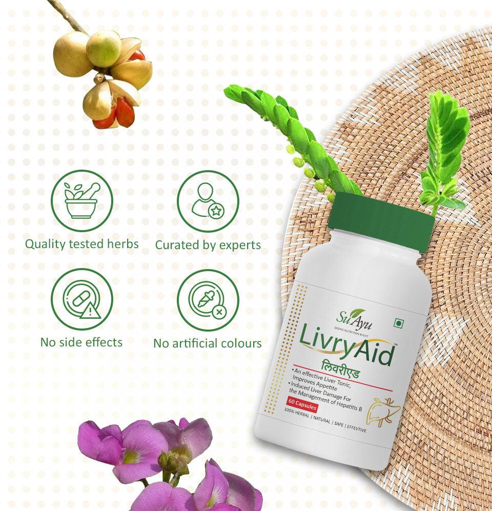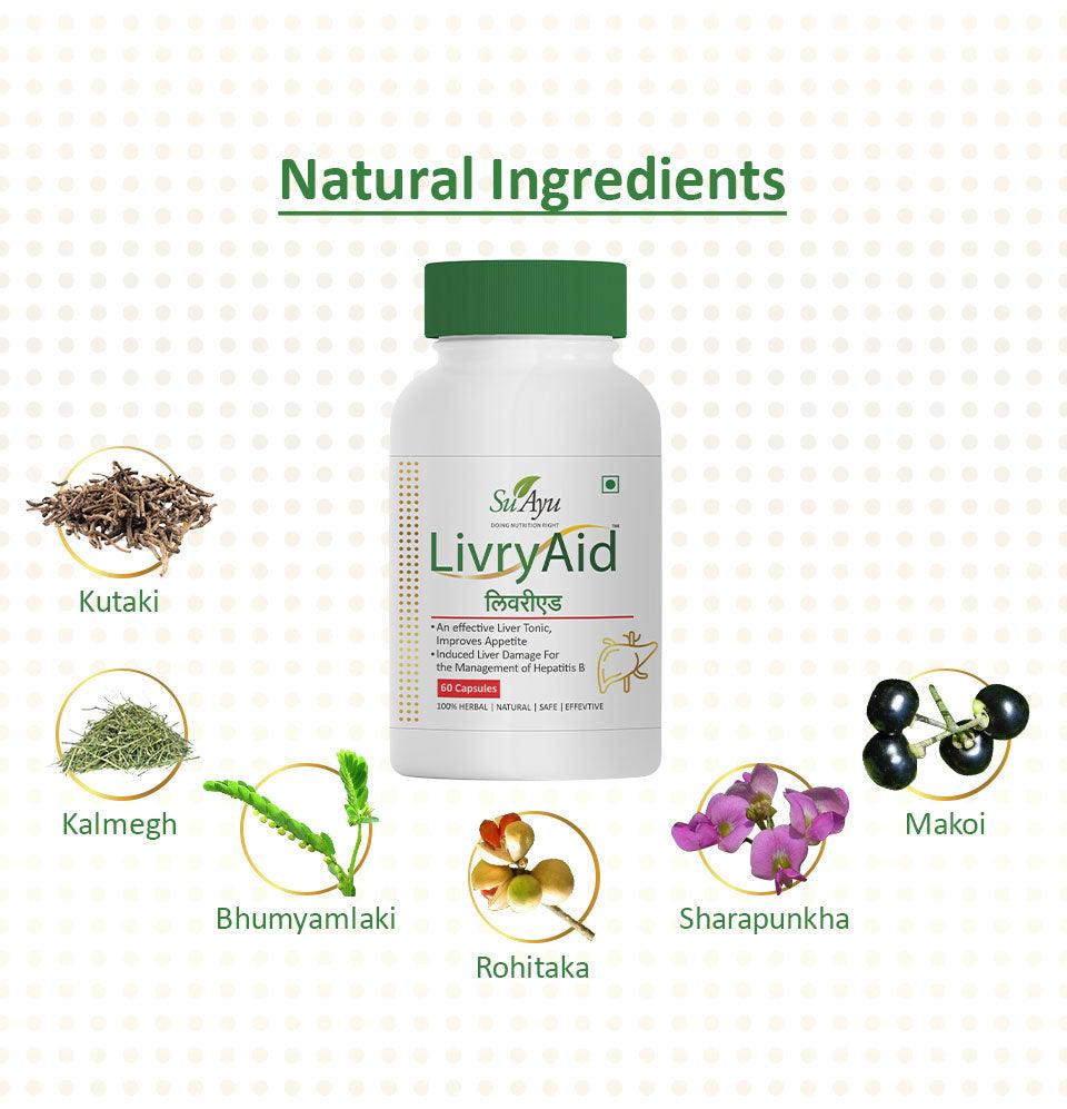 Promotes Liver Function: LivryAid Capsule is expertly formulated to support and enhance liver function. Enriched with potent Ayurvedic ingredients, this capsule aids in detoxifying the liver, promoting optimal functioning, and maintaining overall liver health. It helps your body effectively process and eliminate toxins, ensuring your liver operates at its best.